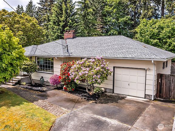 Charming & super clean mid-century one story home w/basement. Main level features large sun-light filled living room w/dining area, fireplace, hardwood floors, 3 bedrooms, full bath. Kitchen with gas stove, pantry, ample cupboards & large eating nook. Full size basement with good ceiling height, huge rec-room w/fireplace, 1/2 bath, lots of storage and outside access w/tons of potential for extra bedroom or possible ADU. Located just 2 blocks from Wapato Park w/off leash dog park, walking trail around Lake. Oversize fenced 10,125 lot provides plenty of room to play & BBQ on the patio w/gas stub, deep garage & additional off street parking. Newer Electrical Panel & Roof. Gas heat, double pane windows. Pre-Inspected & Sewer Scoped