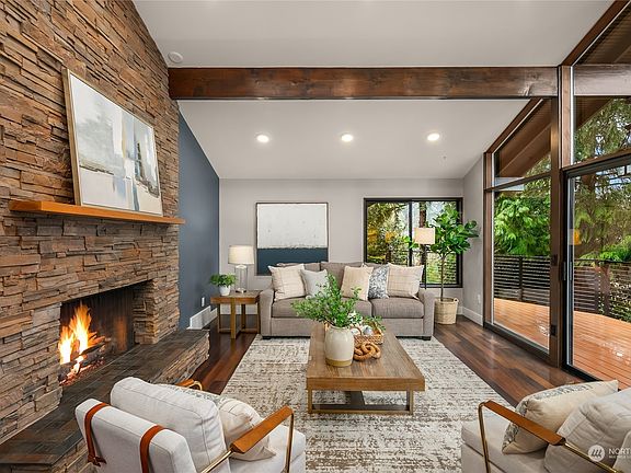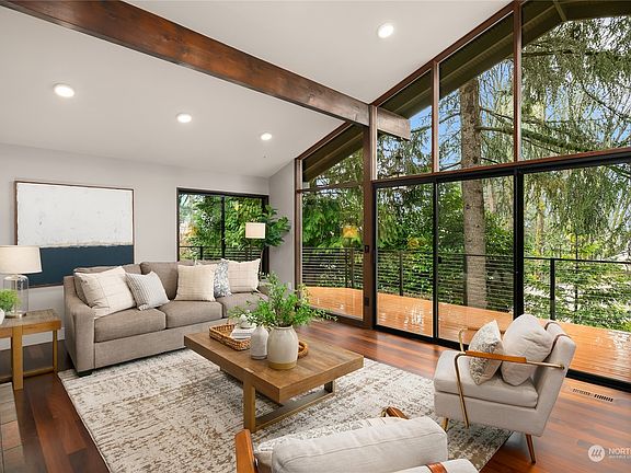 Tucked away at the end of a private lane on a large lot, this two-level contemporary northwest, Leo Fisher designed home has been meticulously updated throughout. Main level features soaring cathedral ceilings & floor-to-ceiling windows; open concept chef’s kitchen with large island; natural light filled family, living & dining rooms; spacious primary suite & two additional bedrooms. Step downstairs to a media & rec room, 4th bedroom, laundry room & flex space perfect for a workout room or home office. Sprawling yard is beautifully landscaped with multiple useable spaces, level grass play area & beautiful, extended deck & patio for entertaining. All the work has been done! Minutes to schools, shopping, Pioneer Park trails & MI Beach Club.