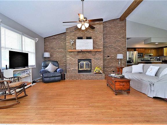 Check out this 3 bedroom, 2 bath brick ranch with many updates on Evansville's north side! As you enter, you will love this open concept space with the living room, dining room and kitchen. The living room features a beamed cathedral ceiling and a brick, wood burning fireplace. The kitchen includes new laminate flooring and countertops, an eat-at raised bar, plenty of cabinet space, and all appliances! There is plenty of room for entertaining friends and family in the dining room that includes a double door to the back deck. The bedrooms are spacious, and the dream laundry room includes a large double closet that is great for a pantry. The 2-car attached garage provides plenty of storage. This home is in a great location near Hwy. 41 and just minutes from north side shopping and the airport. Extensive list of recent updates available. A home warranty is provided for your peace of mind.