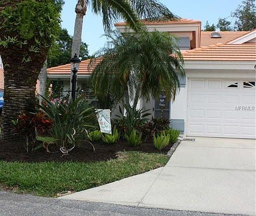 Gorgeous villa in the hidden gem of Westwoods II at Sunrise. Tropical landscaping welcomes you before you enter the front door. The generous living area has lots of natural light from two skylights and 14 foot ceilings. Beautiful updated kitchen has stainless steel appliances, built-in desk, wine rack, tasteful lighting fixtures and a closet pantry. Dining room is elegant with french doors, wainscoting and large bay window. Admire the atrium in the master or the tropical view via the bay window. Separate vanities are appreciated in the master bathroom with a garden tub for your enjoyment. Second bedroom has ample space and a walk-in closet. The Florida room allows the extra space for an office, sitting room, etc. Enjoy the enclosed lanai all year with it's sliding glass windows overlooking lush landscaping and a peaceful lake view or relax on the open porch and take pleasure in the quietness. Off the kitchen is the laundry room with cabinets and a large closet opposite the washer dryer. Bonuses include: new laminate flooring in the kitchen, dining room, Florida room, both bedrooms and laundry room. Plantation shutters in the bedrooms and dining room. Replumbed 2017, A/C and water heater 2016. Monthly fees only $300: exterior building maintenance & insurance, roof, lawn care, pool, tennis courts, cable tv, trash, pest control. This maintenance free villa is a short drive to #1 Siesta Key Beach, downtown Sarasota, UTC Mall and everything Sarasota has to offer. This is not a 55+ community.
