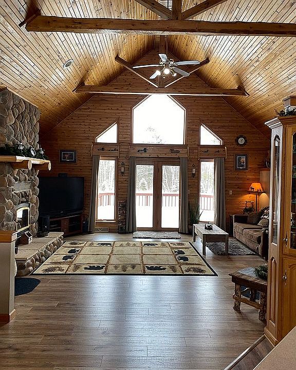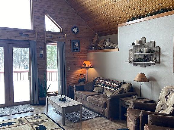 Stunning 4000 sq ft craftsman built home with 36.7 wooded acres. Definitely a hunters dream with quiet and secluded backwoods living with Green Bay only 15 minutes away. Land features heavily wooded 36+ acres w/mature trees, trails, stream and a pond in back of home. Home features a spacious interior with breathtaking views throughout. Tongue & groove cedar walls & ceiling in kitchen, dining & living room. Abundance of natural light and large windows. Living room includes wood burning cozy heat fireplace and wooded beams. Master bedroom & bath has tongue & groove pine ceiling and walls, two side by side walk-in closets & whirlpool bath. Spacious hallway from front & back entryways with Barnwood railings and lockers. Laundry room includes large tub sink & cabinetry. Lower level has newly wood floor, custom built bar, gas fireplace, tongue & groove pine walls & large windows for plenty of wildlife viewing. Lower level also includes a guest bedroom & bath and separate entry to outside. Finished Bonus room above garage offers tongue & groove pine walls & ceiling and plenty of extra room for office, hobby or playroom. The three stall garage has stairway entry to basement. Also includes separate detached two stall garage for extras or hobby shop. Home has front and back decks and screened in porch off the back deck. This home has that cozy peaceful atmosphere and the land is a dream for every nature enthusiast!