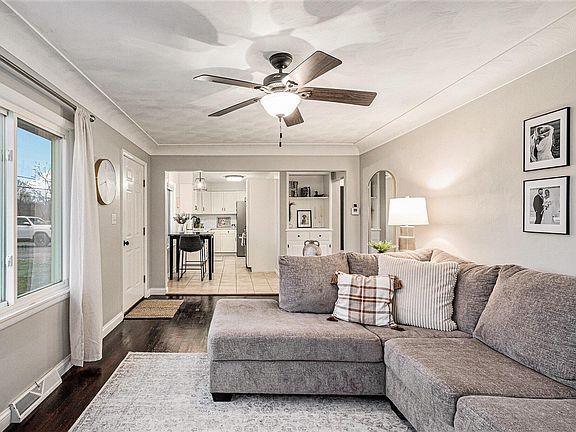 Enjoy peaceful, countryside living at this move-in ready, well-maintained, cozy ranch. Inside, you'll find a bright and welcoming layout featuring hardwood floors, a beautiful kitchen, with quartz countertops, a deep sink, modern cabinetry, and plenty of natural light. The bathroom includes a spacious double vanity, and sits conveniently between both bedrooms. The partially finished basement expands your living options-perfect for a cozy rec room, or workout area-while the additional side offers generous storage space, and laundry area. With new overhead lighting in the garage, and a smartphone-enabled garage door opener, winter parking is made easy. Sitting on just over a half-acre, the yard offers space to play while also enjoying the brand new cement patio- ideal for outdoor dining or gathering. Conveniently located minutes from highway access and nearby communities, the home offers easy accessibility placed in a quiet, country-like setting. Schedule your private tour today!