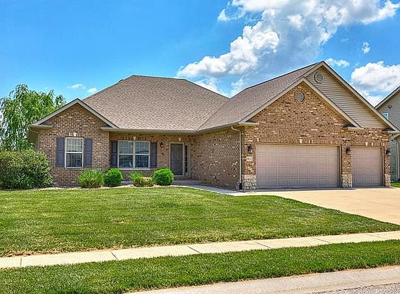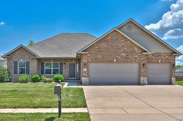 This awesome Ranch faces front with an awesome look and a huge three-car garage for all of your toys. Inside, the Foyer hardwood continues into the voluminous Great Room/Dining Room. The vaulted ceilings, light, up-level finishes, gas fireplace with brick surround, easy circular flow through the tiled Kitchen and Breakfast Room all work together for a very inviting, functional and livable space. The Kitchen is a large U-shape with dark cabinets, stainless appliances, & a stylish backsplash. The Master Bedroom is perfect & the Master Bath is better. It even has a Jacuzzi tub, it???s all about comfort. None of the rooms are too small. There is a huge basement with nearly all of the wood wall framing up already so you can easily add a rec area, more sleeping space and another full bath. Outside there is a wood deck and a flat yard. Great access to everything, including Scott Air Force Base, I-64, downtown St. Louis, Hospitals, Parks, Schools and Shopping.