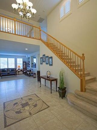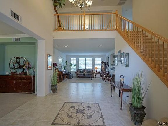 Beautiful two story luxurious Craftsman-style estate located in the quiet neighborhood. Double door entry. High ceiling foyer. 5 bedrooms and 4.5 bathrooms. Spacious formal living room. Formal dining room. Gourmet kitchen with granite counter top, oak cabinets and sit down oversized center island. Walk-in pantry. Breakfast nook adjacent to the kitchen. Large family room with fireplace. Individual laundry room. Wood Shutters throughout the house. 1 bedroom suite downstairs. Downstairs den can be converted to 6th bedroom. Custom oak stairway leads to upstairs. Large master suite and retreat with balcony overlooking backyard. Spacious master bathroom with separate shower, jacuzzie, double sinks and individual toilet room. Large walk-in closet. Upstairs bonus loft is great for entertaining. Cozy sitting room upstairs adjacent to the loft. Large backyard with professional landscaping, lush lawn, trail and koi pond/ bridge(koi fish are not included). Blockwall. Alarm system. Ce