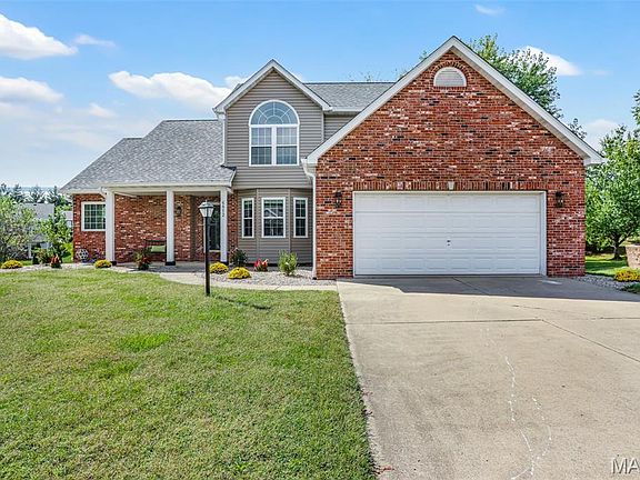 This beautifully updated home in the heart of Edwardsville shines with curb appeal, thanks to meticulous new landscaping. Step inside to a welcoming foyer with warm wood floors that flow into a spacious formal dining room accented with a tray ceiling. The soaring ceilings and sweeping open staircase set the tone in the living room, where a brick fireplace creates the perfect gathering spot. The living room opens to the eat-in kitchen, which boasts freshly painted white cabinets, abundant storage, a pantry, and access to the composite deck—ideal for entertaining or relaxing outdoors. A convenient laundry/drop zone just off the kitchen connects to the 2-car garage. The main-floor owner’s suite offers a gleaming ensuite retreat with dual sinks, an expansive vanity, a jetted tub, separate walk-in shower, and a generous walk-in closet. Upstairs, you’ll find three additional bedrooms and a full bath. The finished lower level is filled with natural light and versatile space for a rec room, games, or movie nights—complete with a fun alcove tucked under the stairs. A nonconforming 5th bedroom with walk-in closet makes an excellent home office, gym, or game/playroom. A full bath and plenty of storage round out the lower level. Step outside to enjoy the spacious yard with mature trees and a charming pergola perfect for gatherings. Located just a short walk to shopping and dining, this wonderful neighborhood features wide streets and beautifully maintained homes.