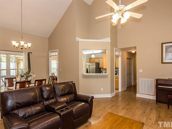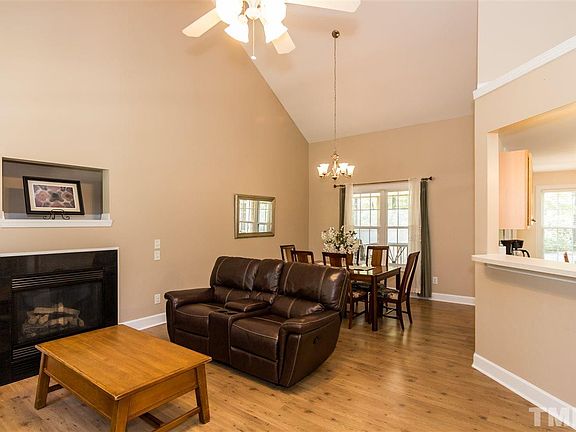 Convenient location in SW Durham! Spacious and open floor plan. 2 Story LR w/ laminate flrs, cf, and gas log FP w/ TV niche. Dining area w/ vaulted clg opens to LR and Kitchen. Kitchen has ss appls, breakfast nook and pass thru to LR w/ breakfast bar. 1st flr MBR suite has cf, WIC, and private bath w/ sep tub/shower. 2 add'l Bedrooms downstairs. Bedroom, Bonus, and Loft upstairs. Nice screened porch and patio overlook partially fenced wooded backyard. Mins to shopping, restaurants, Southpoint Mall & RTP.