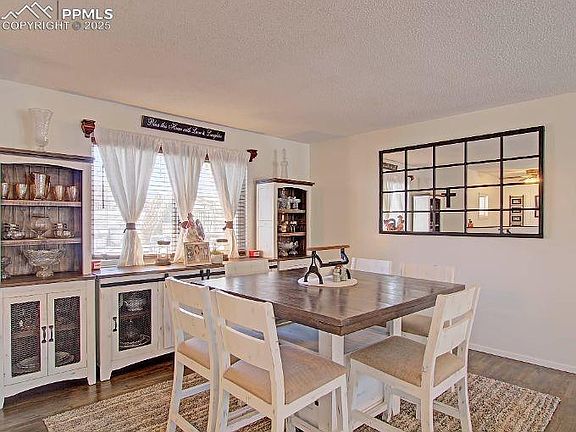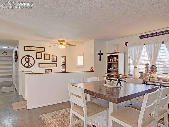 A great opportunity to own a 5 bedroom home at the end of a cul de sac! The owners have loved this home and it shows with upkeep of the original hard wood floors, newer carpeting in bedrooms, fresh paint and remodeled bathrooms in upper and lower floors. The kitchen has brand new stainless steel appliances to include, refrigerator, stove/oven, dishwasher and vent hood. All bedrooms are uncommonly spacious and a office on the lower level could be the 6th bedroom if needed. The lower level has a large family room with a wood burning fireplace and plenty of room for entertaining. Check out the huge back yard with the fire pit! The land to the north of the home where the RV is parked is part the very spacious yard. It's almost a quarter acre! Perfect for boat or trailer parking or possibly a dog run or garden! An added plus is the stucco which adds years of beauty and no siding to upkeep. Super convenient to Ft Carson at 6.4 miles away, Peterson Space Force Base at 10.6 miles away and the Amazon Warehouse is just 4 miles away. Grocery shopping and restaurants are within walking distance. This home has it all!