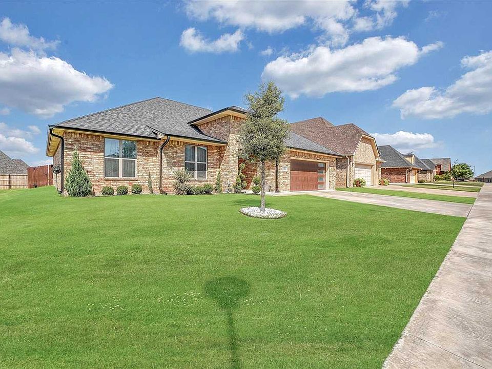 Absolutely beautiful home located in quite & tranquil Oak Point Addition. Large open living area, gas log fireplace, large formal dining area, awesome gourmet kitchen with big island, 5 burner gas cooktop, large breakfast bar built in, double oven, plus microwave, 2nd dining area, walk-in pantry, beautiful custom cabinets & granite counter tops throughout kitchen & bathrooms. Large secluded primary bedroom, luxury bath, corner whirlpool tub, open walk in tiled shower, double sinks, big walk in closet, 14x16 enclosed in sunroom w/ H&Air, tankless HWH. Large utility room with sink & extra cabinets and place for 2nd refrigerator. Equipment with electric charger for car storage shed & playground. New 2025. Water softener. Hand scraped hickory wood flooring throughout top of the line finishes & gorgeous modern details. Call 580-248-8800 for private showings or text 580-581-7870 for more details.