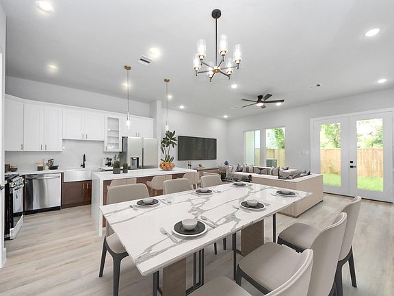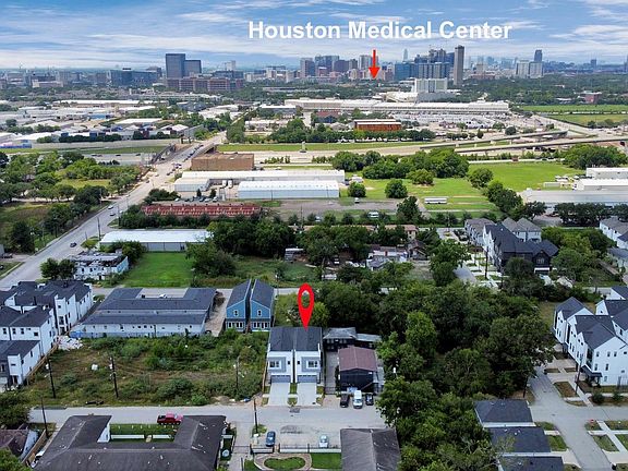 WELCOME TO DEL RIO PLACE — Modern. Urban. Timeless. This expertly crafted 2-story new construction home near the Houston Medical Center offers 2,018 sqft of thoughtfully designed living on a 2,575 sqft lot. Blending clean architectural lines with purposeful function, the open-concept 1st floor features durable LVP flooring, sleek quartz countertops, a full quartz backsplash, & contemporary cabinetry with soft-close hardware. Upstairs, 4 spacious bedrooms & 3 full baths include a serene primary suite with a freestanding soaking tub, oversized walk-in shower, expansive closet, & private balcony. Additional highlights include PEX plumbing, stainless steel appliances, a custom wrought iron entry gate, & a private driveway. The fully fenced backyard features fresh sod, French drains, rain gutters, & a spacious covered patio—ideal for entertaining. Located minutes from the Med Center, Hermann Park, Downtown, and the Galleria - this home is where modern design meets timeless location.