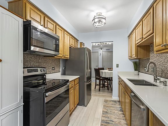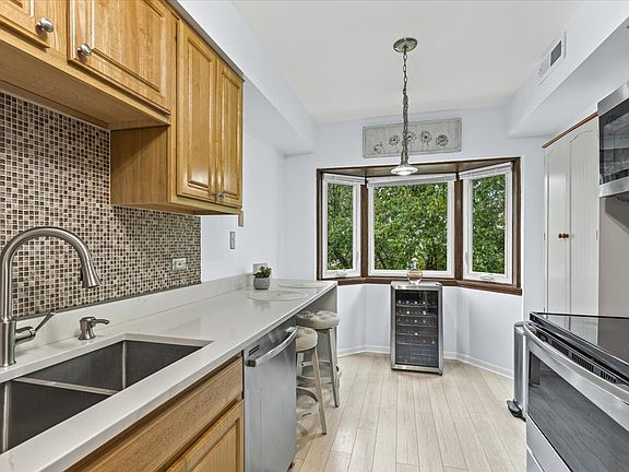 Desirable, bright and beautifully updated 3rd Floor condo with neutral decor featuring two large bedrooms and full updated bath (2013). Updates continue with the renovated kitchen (2013) with new cabinetry, quartz countertops (2024), beautiful tile backsplash, breakfast bar seating, and a stainless steel appliance package (2013 with Refrigerator 2023). The new windows throughout and new sliding door (2023) bring in the southern light. Additional updates include: new furnace & a/c (2013), luxury vinyl flooring throughout (2023), new paint (2023), and lighting (2013). Special features are the fiber core ceiling for extra soundproofing, closet organizers, an in-unit washer and dryer, one exterior parking space, a large storage closet just outside the unit and unique to a third floor unit - attic storage for added convenience. Building amenities include: bicycle storage under the back hallway stairs, an antenna for major TV channels and a commercial washer and dryer on the 3rd floor for cleaning large items like comforters. The building also has an upgraded electrical panel (2024). This condo's location is really convenient, close to major highways, the Burr Ridge Mall, the Route 66 corridor, forest preserves, parks, golf, highly rated schools and just minutes from all the excitement of downtown La Grange and Western Springs.