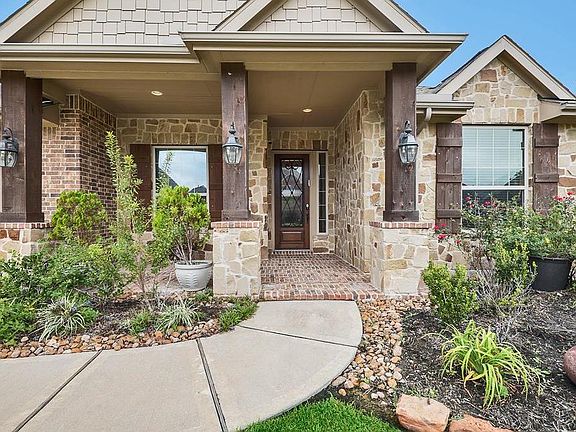 Gorgeous curb appeal w/brick & stone, front porch & beautiful landscaping! The kitchen & family room are center stage, perfect for family & guests! Kitchen has an abundant of cabinets & granite counters. Enjoy the warmth of the family room w/corner fireplace. Master is tucked away at the back. Split bedroom arrangement w/4 full baths total! Upstairs game room could be 5th bdrm. Covered patio allows you to enjoy the outdoors rain or shine! Convenient to The Woodlands shopping & Exxon Mobil!
