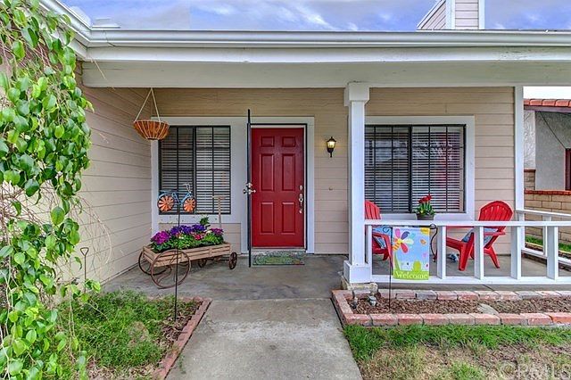 A true gem in the heart of Chino. Don't miss your chance to own this 3 bedroom, 2 bath, single story charmer located on a cul-de-sac in one of Chino's finest neighborhoods. Picture yourself sipping lemonade on the quaint front porch as you relax and watch the kids play. You will feel right at home as you enter the living room featuring a used brick fireplace & vaulted ceiling making this room feel spacious yet comfy. The refreshingly bright & modern kitchen has plenty of room to create family meals and is characterized by stainless steel appliances, a garden window, soaring ceilings & sizable dining area. The large master bedroom boasts a ceiling fan, lots of closet space, sliding doors to rear yard and a 3/4 bath with his & her vanities. The rear yard boasts a newer Alumawood covered patio with lighting, block walls and plenty of space for outdoor entertaining. The layout of this home makes it feel much larger than actual square footage. You'll want to see this one before it's gone!