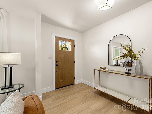 Wood-burning fireplaceRear deckCovered front porchWooded rear yardVaulted ceilingGold hardwareFresh paint
