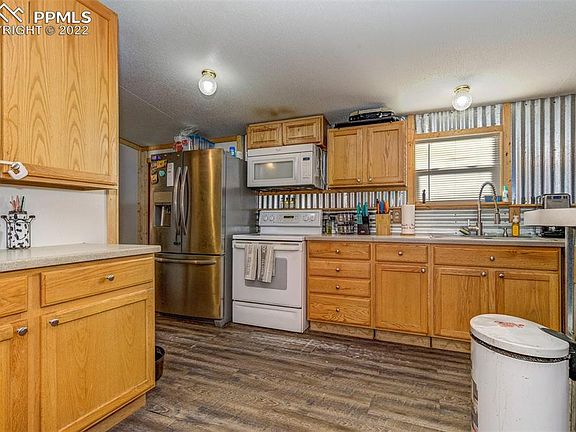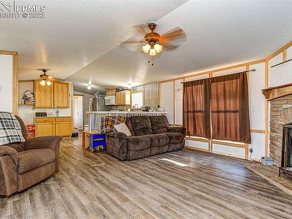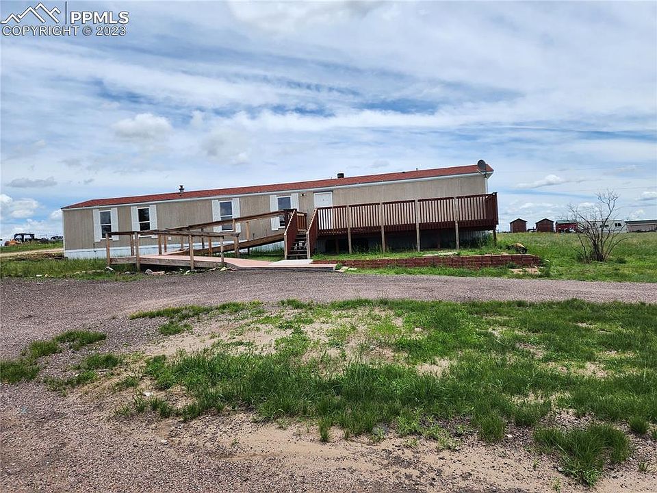 Home on the range. This home offers 3 bedrooms and 2 bathrooms and amazing views of Pikes Peak. This property has a single wide home on it currently that could be used while you build your dream home or as a rental home. There are 5 acres with a well and septic. The 2 car carport stay as well as all the kitchen appliances.