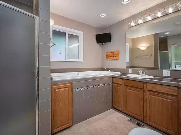 Large remodeled home in quiet area on a dead-end street. Near PCC with easy access to I-5. Large game/ family room with pool table, could be another bedroom. The open plan layout includes a living room with gas fireplace. The primary suite contains large closets and heated bathroom floor. The large back yard patio has a covered play or party area that includes a built-in gas fire pit. Ample parking as well as garage. Tigard School District.