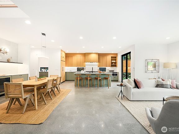 Experience modern Northwest living in this exceptional 5-bed 4-bath new construction by KaneBuilt, nestled in sought-after Bridle Trails. Designed with a perfect balance of luxury and functionality, this home features a spacious yard and a 2-car garage with EV charging. Inside, heated polished concrete floors pair beautifully with real hardwoods and sleek steel accents. The chef-inspired kitchen shines with a gas range, built-in fridge, and high-end appliances. Soaring vaulted ceilings and walls of windows fill the space with natural light, while a versatile upstairs bonus room offers room to relax, play, or work. Gather around the cozy gas fireplace or entertain effortlessly in this stylish, thoughtfully crafted home. This home has it all!