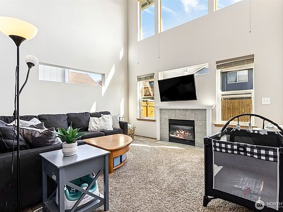 Move-In Ready! This beautifully maintained 4-bedroom, 2.5-bath home offers an open-concept floor plan. The inviting living room features high ceiling, gas fireplace, large windows that illuminate the space w/ natural light. Open floor plan modern kitchen w/ a center island, new quartz countertops, microwave, sink, faucet, and garbage disposal; newer SS appliances, new laminate flooring in the kitchen, dining,& bathroom, fresh interior paint for a crisp, modern feel. Spacious loft upstairs is an ideal flex room. The vaulted primary suite offers a tranquil retreat w/ a 5-piece bath & walk-in closet. Main floor bedroom is currently used as an office. Centrally located in a lovely neighborhood near the freeway, schools and all the conveniences!