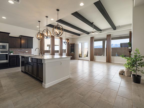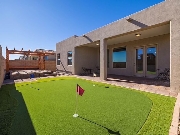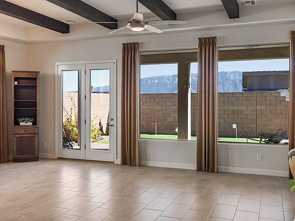 Showcasing SPECTACULAR mountain VIEWS from this gorgeous custom home nestled on a premium corner view lot in sought after Lomas Encantadas neighborhood! You will love & appreciate the $40,000 + in upgrades! Discover striking tile floors & upgraded baseboards, CUSTOM energy efficient blinds, shutters, 8ft doors! Stunning great room featuring towering raised ceiling w/ upgraded exposed beams, gas log fireplace with custom mantle, & wall of windows framing the Sandia Mountains & backyard! The chef's kitchen offers 5 burner gas cook top, upgraded stainless steel farm sink, beautiful quartz counter tops, brick backsplash, upgraded pendant lights over island & walk-in pantry! $20,000 in the amazing fully landscaped backyard with covered patio, custom pergola, putting green and VIEWS! ...MORE!