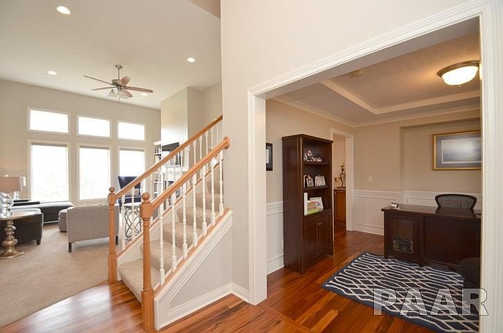 Unique opportunity to have it all in this well maintained 5 BR home located in popular Sommer Place Sub with Dunlap Schools.Inside features a 1.5 story great room w/ built-in bookcase & a see-through FPL leading to the kitchen.The kitchen has center island, large pantry, SS appliances, surround sound speakers in ceiling, desk area, butlers pantry & beautiful tiger wood floors that flow through the informal dining to the formal dining & foyer.Main floor MBR has sloped tray ceiling, master BA w/ heated tile floor, walk-in closet, whirlpool tub & separate shower w/ dual shower heads.