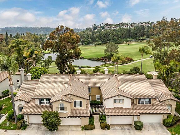 Welcome home to the gated, coveted community of Sanderling at Aviara! Perched atop the esteemed Aviara Golf Club, this desirable townhome offers brilliant views of the 16th & 17th holes and a direct view of the lake. Designed for effortless living, the interior features Travertine floors, high ceilings & an abundance of natural light. A cozy fireplace adds warmth and invites relaxation in the living room. The open concept living & formal dining areas, enhanced by large sliding glass doors, seamlessly extend the interior comforts outdoors, offering a spacious and high-end feel. The delightful eat-in kitchen is equipped with granite countertops, SS appliances, and an extended breakfast nook for casual dining. A convenient main-level half bath adds to the home's functionality. Upstairs, the attention to detail continues in the spacious primary suite, complete with picturesque views & private balcony. Spa-quality BA featuring an oversized jacuzzi tub, one of a kind steam shower & makeup vanity. 2 secondary BRs & full BA complete this magnificent floor plan. Additional features include built-in surround sound speakers, central vacuum & attached 2 car garage. The tranquil backyard patio is ideal for al fresco entertaining with built-in BBQ, surrounded by lush landscaping, an array of flowers, wildlife & stunning sunsets. Enjoy views of the Park Hyatt Aviara Resort & fireworks on July 4th. Sanderling offers 2 pools, volleyball & numerous walking trails throughout the community. World-class amenities are just moments away, including the Omni La Costa Resort, Arnold Palmer-designed Aviara Golf Course, & Batiquitos Lagoon, hiking trails, parks, & more. Top-rated Aviara Oaks Elementary & Middle Schools. Quick access to I-5 & the beautiful Carlsbad beaches!