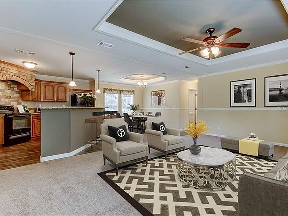 One or more photo(s) has been virtually staged. ***BRAND NEW CONSTRUCTION***. Nestled on nearly 1 acre, Enjoy a COUNTRY FEEL in one the best School district of Pasco County. This almost 1,500 sq.ft. NEWLY BUILT Home is perfect for an active family, boasting amazing upgraded features. From the warm and pleasant WATERPROOF VINYL PLANKS, PLUSH CARPET, TRAY CEILINGS, to the TUSCAN STYLE KITCHEN with CROWN MOLDINGS, Ensuite BATHROOM WITH GARDEN TUB and SEPARATE SHOWER, this home as it all! New owners will enjoy comfortable spaces in a SPLIT and OPEN FLOORPLAN. Enter to a cozy LIVING ROOM featuring Ceiling fan and Tray Ceiling, ideal for relaxing or spending time together. The Kitchen opens to both Dining and Living Room with a nice Breakfast Bar overlooking the elegant TUSCAN STYLE DECOR. Retreat for a restful night's sleep in any of the three bedrooms, each with its own WALK-IN CLOSET. The MASTER SUITE showcases an attractive Ensuite bath with GARDEN SOAKING TUB, SEPARATE SHOWER, and 2 VANITIES. The large fenced yard is perfect for your animals or pets to wander (zoned AR). Ideally located near I-75 & SR-54, with Hospitals, Shopping (The Grove), Restaurants, Entertainment (Cobb Theater). This Won't Last!!! ***HOME QUALIFIES FOR A 100% FINANCING***