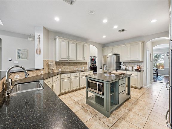 Ideal family home in Circle C West! Situated on private corner lot with towering trees and outdoor living in mind! This home features a 3 car tandem garage, fabulous private back yard w/outdoor grill, fridge & fire pit on stone paved patio. Inside you'll find tile floors in the foyer and hand-scraped hardwood floors in the living room, office and dining rooms. Enjoy making meals in the spacious open kitchen with stone accents, center island, plenty of bar seating and it all opens to the living and breakfast area with a view to the backyard. The living room features 20 ft ceilings, art niches and floor to ceiling windows with a cozy wood burning firelpace. The primary suite is on the main level and 3 additional bedrooms, 2 baths, desk area and a second living room are on the second level. Location is great!