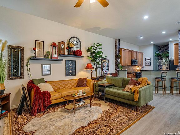 ** Please submit offers by 6.15.23 by 5pm ** You'll be wowed with this chic decorator's home located close to the Medical Center, UTSA, and USAA. 2 bedroom, 2 bath plus office space with many updates including paint, wallpaper, back deck, room divider, custom window treatments, one with unique built in shelving above, beautiful chandelier, water softener, and much more. Open floor plan with high ceilings, recessed lights, granite counters and lots of natural LIGHT. Outdoor deck in back and side patio. One car enclosed garage. Bring your pets. Fenced in back yard and community dog park at the end of the street. Welcome Home!