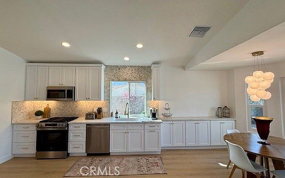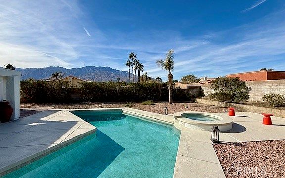 UNFURNISHED LEASE AVAILABLE IMMEDIATE MOVE-IN! Luxurious, designer remodeled 3 bedroom/2 bath view home in Cathedral City just seconds from Palm Springs. Tucked away on a tranquil cul-de-sac street, this home offers generous living space with a top-of-the-line modern design. The huge kitchen showcases elegant white shaker cabinets, Calcutta queen counters, marble tile backsplash, a huge walk-in pantry and a premium stainless steel GE appliance package, including a convention and air-fry range, dishwasher, microwave, and counter-depth refrigerator. In addition, there's a spacious great room with vaulted ceilings and stunning wood-burning/gas fireplace. The primary suite features LED lighting, modern ceiling fan, and walk-in closet. The attached primary bath features a designer double vanity, new tile floors, a Kohler toilet, and a custom rain shower and wand. The hall bathroom also boasts a designer vanity, a Kohler toilet, and a custom-tiled tub area. The second and third bedrooms feature ample wardrobe closets and modern ceiling fans. This home also offers new LVT wood flooring, designer lighting, paint, baseboards, and 2-in wood blinds (bedrooms). Not to mention the new roof, newer HVAC system, and new dual-pane windows. Step out to the large covered patio that overlooks the pool and spa. The super private backyard features mountain views for the newly remodeled pool and spa with new pebble tec, new tile, resurfaced pool deck, upgraded pool equipment and new landscaping. Rounding out the property is the rare 3-car attached garage with sectional doors and auto openers. Located in a great location, close to Palm Springs and Cat City entertainment, shopping and dining options. PLUS, BRAND NEW 18 PANEL OWNED SOLAR