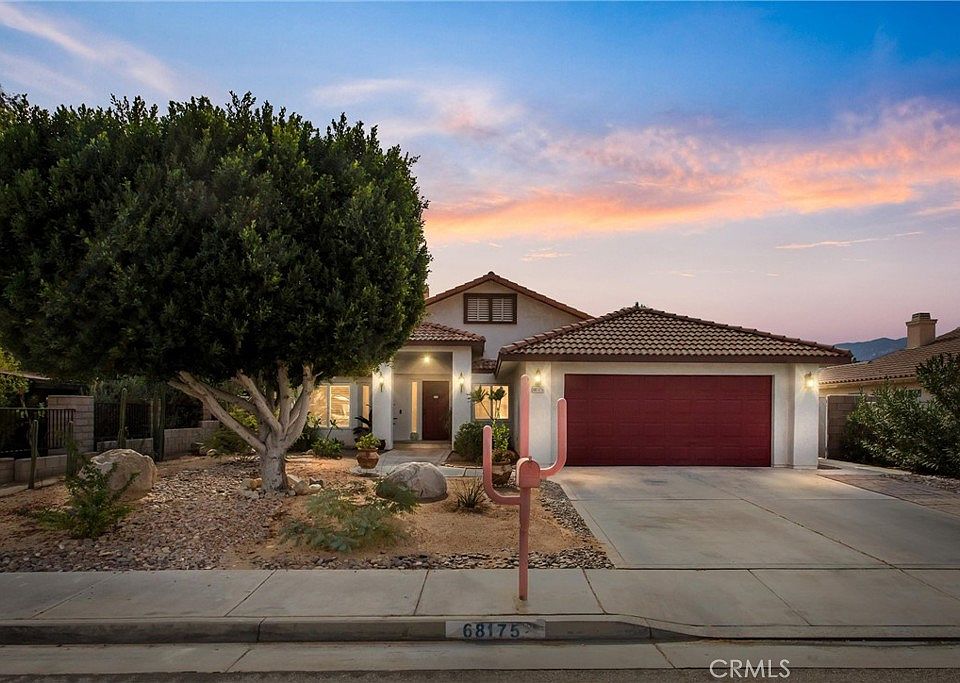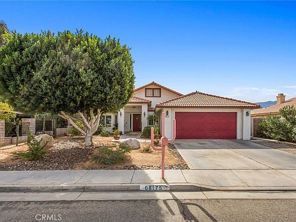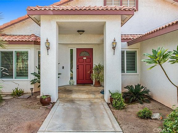 Single-story home in Cathedral City featuring 3 bedrooms and 2 bathrooms with tile flooring throughout the main living areas and carpet in each bedroom. Plantation shutters on every window add a clean, finished look and help control light and temperature. The open-concept kitchen includes granite countertops, white painted cabinets, a breakfast bar and a view into the family room—perfect for everyday living. Upon entry you’ll find a formal sitting area and dining area that flow into the main space. The primary suite offers a walk-in closet, walk-in shower, and slider door that opens to the patio. Both bathrooms feature walk-in showers with updated tile finishes. Indoor laundry room adds convenience. Outside you’ll find a covered concrete patio, block wall around the entire yard for privacy, and a storage shed for extra space. The backyard is a mini orchard with mango, pomegranate, orange, and guava trees to enjoy season after season. Located close to Cathedral Canyon Country Club, Panorama Park, local grocery stores, and easy access to Hwy 111. Includes 3D tour, video walkthrough, and interactive floor plan for virtual viewing. This well-maintained property offers comfortable single-level living and proximity to shopping, dining, and desert resorts.