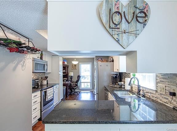 Peaceful and quiet retreat in South Charlotte. 2 bedroom, 2 bathroom end unit townhome is ideally located with a short walk to Carmel Commons and a quick drive to Ballantyne, South Park and Stonecrest. Galley kitchen with white cabinets, black granite and stainless steel appliances. A large master suite boasts a large vanity with make-up counter. Relax in the private back patio that is completely fenced and lined with tree's. Virtual tour's only until March 11, 2020