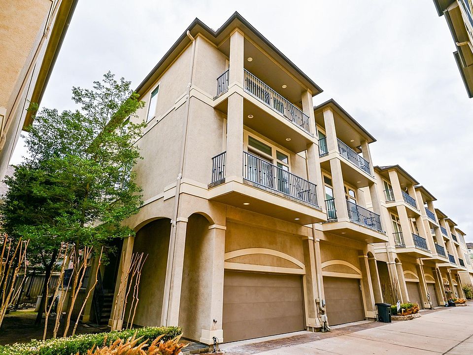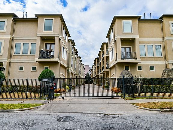 Showings start Nov 14. Perfect Medical Center location in a quiet gated neighborhood! This townhome has been well maintained and cared for with fresh paint throughout (it was previously the landlord's personal home). This 3 story home boasts a HUGE open second floor living area perfect for entertaining and dining. Sit back and enjoy the fireplace or relax on one of the two balconies. The first floor features a bedroom with a full bathroom and easy access to the attached garage. Upstairs you will find an amazing kitchen with an open concept to the living space. This kitchen features s/s appliances, island, plenty of cabinet and pantry space! The primary BR features an en-suite with double sinks, a stand up glass enclosed shower, and a whirlpool jetted tub! All BRs feature a en-suite bath. Easy access to Med Center, downtown, Rice Village, and freeways.