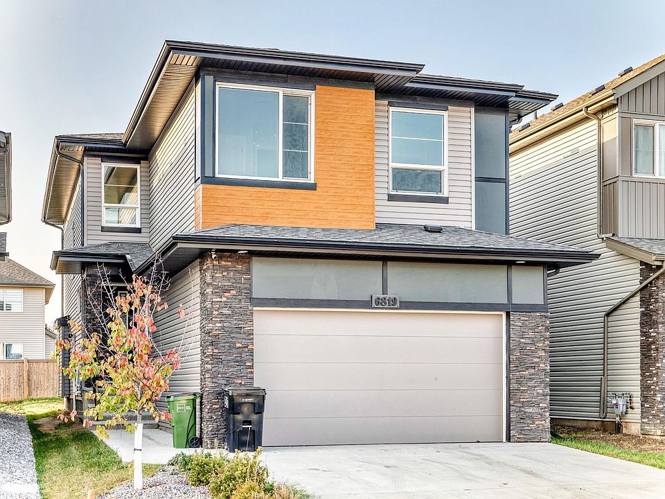 Beautiful home with suite in prestigious Schonsee Neighbourhood. Welcome to this 2,330 sq.ft., fully finished home. This property features a separate entrance to a basement suite-ideal for extended family. The main floor boast a bright open floor plan, including a spacious living, and dining area. Modern kitchen, walk through pantry, bedroom/den and a 3 pce. bathroom. Upstairs, you will find versatile bonus room, 4 well sized bedrooms, 2 baths, laundry. Master bedroom, has a 5 piece ensuite bathroom, walk-in closet. The basement has a full kitchen, dinning/living room, 2 bedrooms, 4 pce. bathroom, laundry. Step outside to a South, sunny, backyard, with a deck, perfect for relaxing, and entertaining. Situated close to shopping, schools, park, huge lake, transportation. This home offers perfect blend of comfort, convenience and location.