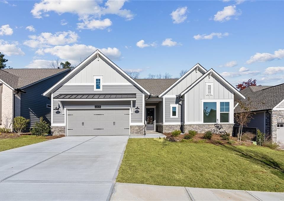 Explore the extraordinary comforts and timeless craftsmanship built into every detail of The Keyser new home in The Retreat at Sterling on the Lake of Flowery Branch Georgia. A showcase-style kitchen with quartz counter tops along with a 36' gas cook top, designer stainless-steel vent hood and built in microwave and oven shines at the heart of this home. This kitchen is ideal for holiday hosts and future celebrity chefs. The open dining and family space easily adapt to a variety of decorative styles and furniture arrangements. Retire to the easy luxury of your Owner’s Retreat, featuring a tranquil en suite bathroom and a sizable walk-in closet. The front study helps create a first impression that reflects your personality. Two extra bedrooms are nestled into private wings of the home, and each provide a walk-in closet and an en suite bathroom. THE RETREAT @ STERLING ON THE LAKE IS 55+LIVING. LAWN MAINTENANCE INCLUDED ALONG WITH THE RETREAT'S PRIVATE AMENITIES. TOURS BY APPOINTMENT BY TO SEE OUR TWO BEAUTIFULLY DECORATED MODEL HOMES. $10,000 incentive subject to change or end at any time.