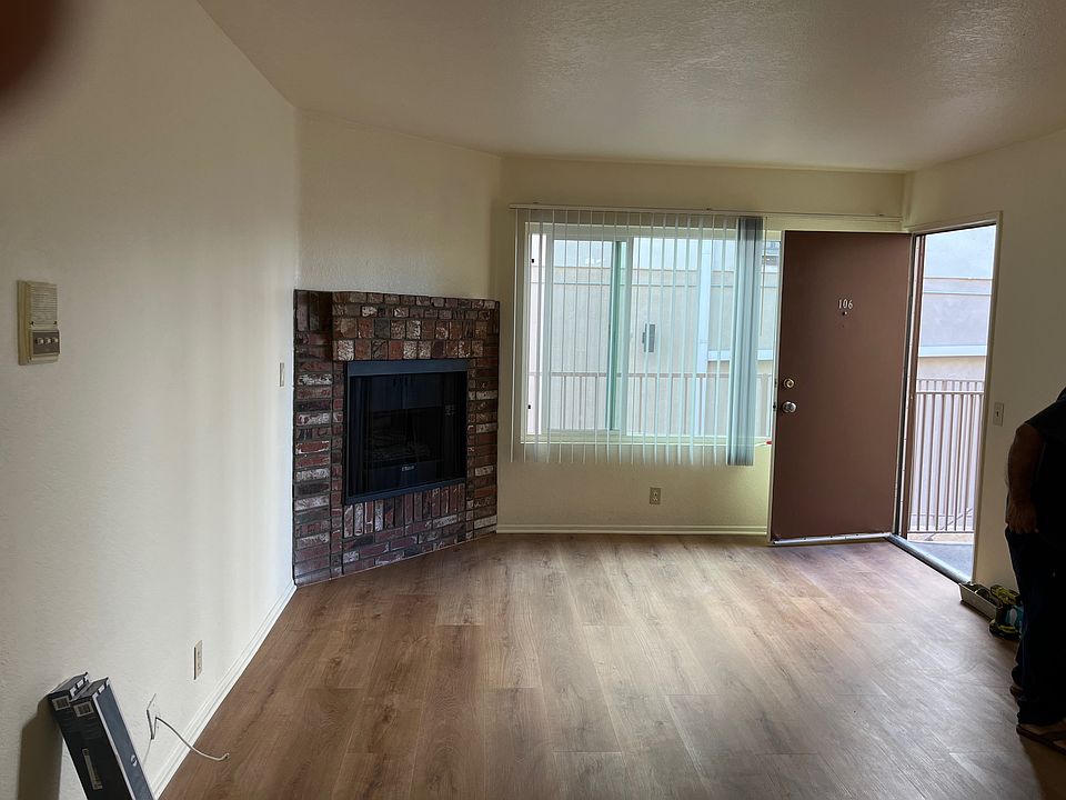 Freshly painted,new laminate flooring,new cabinets and apliances,central A/C,fireplace,onsite laundry and manager,gated entry and garage,quiet building,walking distance to transportation.Photos coming soon.