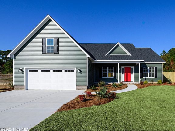 Here lies your dream home—brand-new, beautifully crafted, and ready to welcome you! Offering 3 bedrooms, 2 baths, and an upstairs bonus room, this 2,000 sq ft design blends style, comfort, and functionality. The heart of the home is an open-concept living area where a vaulted ceiling, luxury vinyl plank flooring, and a cozy fireplace create the perfect atmosphere for both everyday living and entertaining. The kitchen will feature quartz countertops and a pantry for added storage. The spacious primary suite is your private retreat, complete with a spa-like bath featuring dual sinks, a walk-in shower, and a generous walk-in closet. Two additional bedrooms and a full bath provide flexibility for guests, while the upstairs bonus room offers endless possibilities—home office, hobby space, or media room. Enjoy your mornings on the covered front porch or unwind in the evenings on the covered back patio. An attached garage provides plenty of storage, and the prime location—just minutes from historic downtown New Bern—means you're close to shopping, dining, and waterfront charm. With no city taxes, this home offers both beauty and practicality. Schedule your private showing with us today!