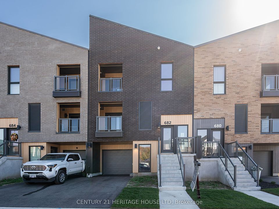 Welcome to 682 Benninger Drive, a brand-new ENERGY STAR certified stacked townhouse in Kitchener's desirable Trussler West community. This modern Beckett model by Activa offers 2 bedrooms, 2.5 bathrooms, and two covered balconies, all designed for stylish, low-maintenance living. Inside, the open-concept main floor flows seamlessly from the great room to the kitchen, creating a bright and welcoming space. From here, step out to your first covered balcony perfect for entertaining or relaxing rain or shine. Before closing, the builder will be adding stainless steel appliances and a washer & dryer, so your new home will be fully move-in ready. Upstairs, the primary suite features a private ensuite bathroom, walk-in closet, and its own balcony, giving you a true retreat. The second bedroom has access to the main bathroom, making it ideal for family, guests, or a home office. A convenient half bath is located on the main floor for visitors. The finished walk-out basement adds even more versatile living space for a gym, office, or media room, and the single-car garage provides both parking and storage. As an added bonus, the builder is covering your condo fees for the first two years, giving you incredible savings while you enjoy all the benefits of this brand-new home. Located close to Sunrise Shopping Centre, parks, schools, and with quick access to Highways 7, 8, and 401, Trussler West offers the perfect blend of convenience and community. Don't miss your chance to own the Beckett model at 682 Benninger Drive - Don't miss out on this amazing 2-year condo fee incentive!