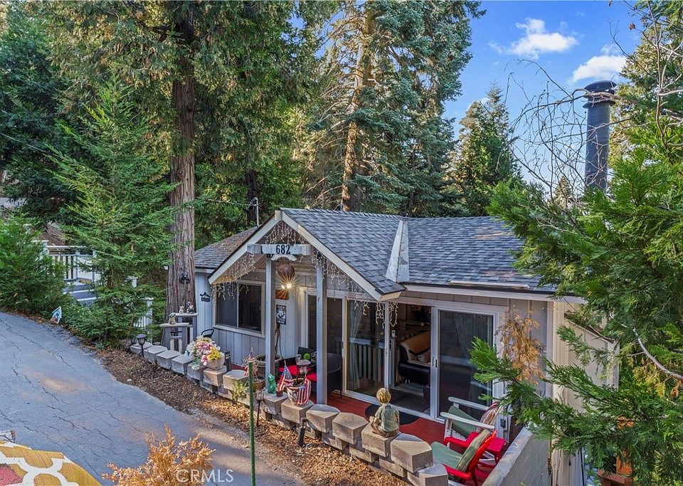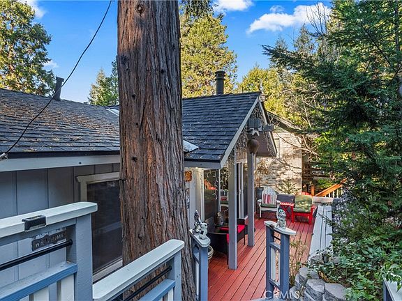 Welcome to this warm and charming cabin, perfectly situated in a serene setting. Step out onto the expansive private deck and take in the stunning forest views that surround this inviting home. Inside, you’ll find a thoughtfully designed layout with 2 bedrooms and 1 bath on the upper level, along with an additional bedroom, bath, and family room on the lower level, ideal for multigenerational living or guest accommodations. Sit by the gorgeous brick fireplace and enjoy sunlight entering via the expansive front windows. The home has been remodeled by a custom designer. Upgrades include granite countertops and modern sinks, new plumbing, electrical, and sewer piping, new Andersen doors, two wall furnaces, two portable AC units, new high-efficiency water heater and a 25-year roof for peace of mind. Additional highlights include enclosed under-house storage, two convenient parking spaces, a full land survey with plot maps, and newer appliances. Lovingly maintained by the current owners and never rented, this home combines modern upgrades with a cozy feel. Conveniently located just a 5 minute drive from Lake Arrowhead’s restaurants, shopping and scenic mountain activities, it’s sure to give rest and relaxation vibes the minute you walk in the door.