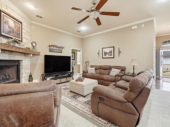 Experience the perfect blend of comfort and style in this beautiful 4-bedroom, 3 full bathrooms all nestled in desirable Lytle Shores. The home's split floor plan offers privacy and comfort, featuring a generously sized primary suite complete with a bathroom for your ultimate retreat. Three additional bedrooms provide plenty of space for guests PLUS an office space. The open-concept living area is designed for entertaining, flowing seamlessly from the spacious living room into the formal dining area and kitchen. The kitchen boasts modern appliances like double oven, plenty of countertop space, and a convenient breakfast bar, ensuring it's both functional and inviting. The backyard is a private oasis with a manageable-sized yard, ideal for those who enjoy low-maintenance living without sacrificing outdoor enjoyment. Mature trees bolster the charm and provide ample shade, making it a wonderful spot for relaxation. The screened-in patio offers an idyllic setting for morning coffee or evening unwinding, free from pests.