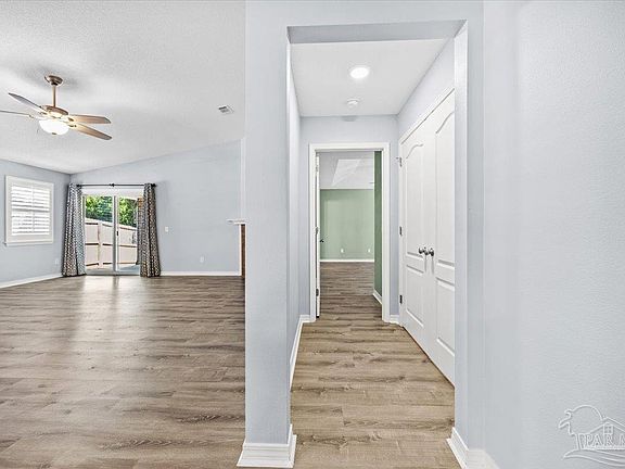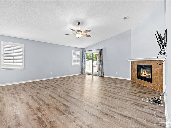 Nestled in the Airway Oaks community of Pensacola, this thoughtfully designed 3-bedroom, 2-bathroom home features an open-concept layout with beautiful plantation shutters ideal for both daily living and entertaining. At the heart of the home, the kitchen boasts ample counter space, a center island, and seamless flow into the dining area and spacious great room—creating a warm, inviting atmosphere for gatherings. The master bedroom is privately situated at the rear of the home and includes a walk-in closet along with a well-appointed master bathroom. Two additional bedrooms offer flexibility for guests, a home office, or family needs, including a full second bathroom for convenience and comfort. Additional highlights include an indoor laundry room, a two-car garage, and a back deck extending off of the patio. Other notable updates include interior and exterior HVAC replaced in July 2023, water heater replaced in February 2024, new 10' x 12' deck installed February 2022, and sliding glass door replaced in July 2020.
