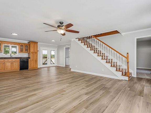 Sitting on over 2 acres, this property offers privacy and a peaceful setting surrounded by mature trees. The home features fresh paint, new flooring, and kitchen appliances that convey. Enjoy the huge covered back porch overlooking the secluded yard, complete with a chicken coop. Inside you'll find a spacious mudroom/laundry with tile flooring and a bonus room upstairs that could serve as a third bedroom. A 24x30 detached shop with electric and a concrete floor adds excellent storage or workspace. This property truly has room for it all—comfortable living, outdoor enjoyment, and functional extras.