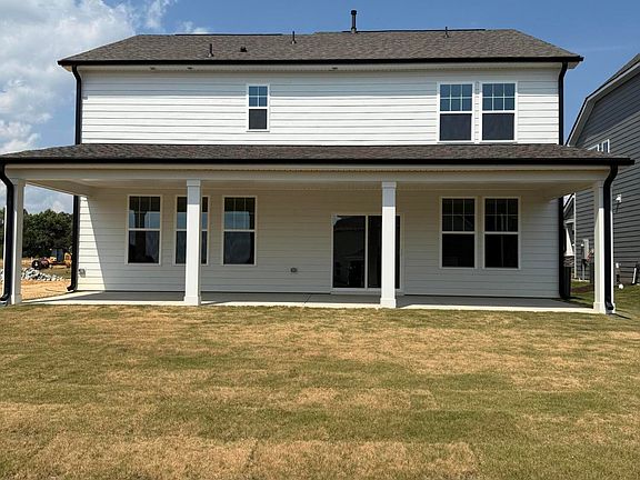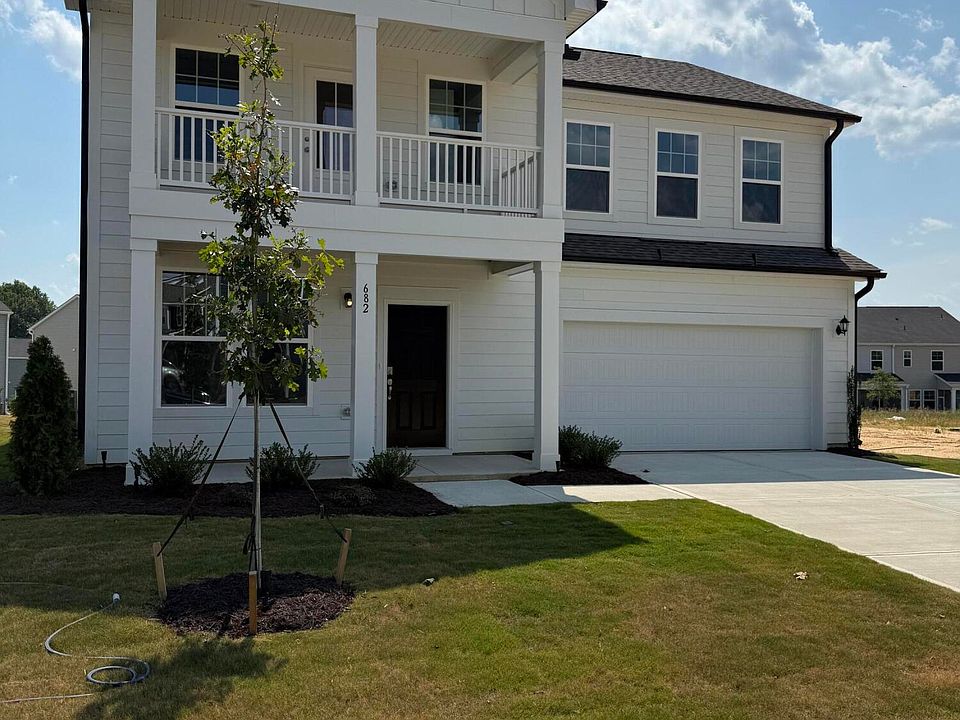 Stop scrolling! This 4-bed, 3-bath beauty has everything: a kitchen you'll actually cook in, bathrooms that end the morning ''who's next?'' fight, and a backyard big enough for BBQs! Welcome to Station Pointe - Conveniently Located Minutes from Downtown Angier and Fuquay-Varina! Station Pointe is just steps away from the new NC 55 Bypass for easy access to all areas of the Triangle! This stunning Burton plan welcomes you with a charming front porch and an inviting second-level balcony. The main floor features a thoughtfully designed guest suite, a full bathroom, an open kitchen with a spacious island, and a breakfast area. The kitchen is adorned with a stylish tile backsplash & stylish quartz countertops, and pendant lights. The expansive family room, highlighted by a cozy fireplace, creates a warm and inviting space for relaxation. Upstairs, a generous loft provides additional living space, perfect for entertainment or quiet retreats. The primary suite is a sophisticated haven, featuring a spacious walk-in closet, a beautifully tiled shower with a built-in bench, and dual vanities for added convenience. Two secondary bedrooms, each with their own walk-in closets, offer ample storage and comfort. At the back of the home, a large covered porch extends along the back of the home creating the perfect setting for outdoor relaxation. Take full advantage of the community amenities, including a pool, bath house, and scenic walking trails. With shops, restaurants, hospitals, and major roadways just minutes away, everything you need is right at your fingertips. Renderings and photos are for illustrative purposes only and may not reflect the final construction. This home is complete!!