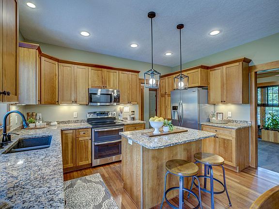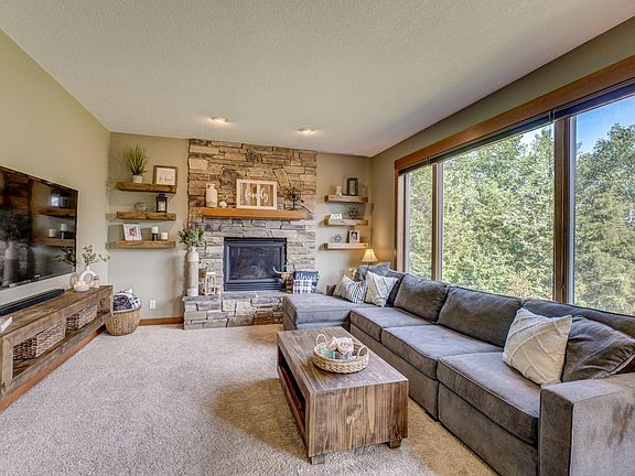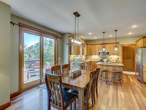 Situated on a private and peaceful 2-acre lot, this beautiful home boasts 5 beds & 4 baths across 3,000 sqft of living space. This open-concept beauty is flooded with natural light, featuring a gorgeous stone fireplace, high-end finishes, multiple living areas, and a kitchen that impresses with SS appliances, granite counters, & a spacious center island. Sizable bedrooms provide space & comfort for all while the owner’s suite offers vaulted ceilings, an ensuite bath & walk-in closet. Retreat to the LL to find an additional living area, bedroom, and ample storage. The heated 3-car garage boasts a projector & bar with a fridge, ice maker, and dishwasher, perfect for entertaining! Enjoy the outdoors from the spacious & private yard, charming front porch, or walkout deck. Updates include new siding, roof, gutters, & garage doors. Nestled on a quiet cul de sac near Willow River State Park & just minutes from town, you’ll love the convenient location! Don’t wait to make this stunning home yours!