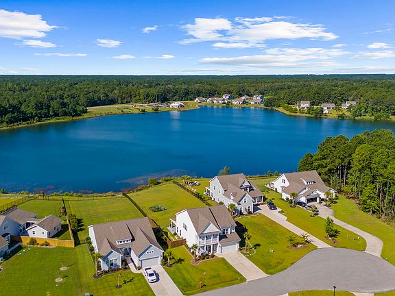 Set on one of the largest lakefront lots in The Bridges at Seven Lakes, this home offers what so many Charleston buyers can't find: room to breathe. The half-acre property features a private, fenced-in yard and a 600+ sqft. covered back porch overlooking wide water views--perfect for everyday outdoor living. Nearly every window frames picturesque lake or nature views, filling the home with light and scenery. Inside, the open concept living space is designed with room to move and centered around the views. The kitchen, dining area, eat-in counter, and living room with fireplace all look out across the lake through walls of windows. The gourmet kitchen includes quartz counters, a butler's pantry, and a separate dry pantry for exceptional storage. A formal dining room makes entertaining easy,while a mudroom with built-in bench seating and hooks keeps daily life organized. One of the four bedrooms is conveniently located on the first floor. Directly off the kitchen, the fully covered back porch with ceiling fans extends your living space outdoors year-round. Upstairs, the primary suite is a retreat of its own, featuring a spacious sitting parlor, custom walk-in closet, and an ensuite with dual sinks, vaulted ceilings, a Roman shower, and a separate water closet all complemented by sweeping lake views. The laundry room is also located on the second floor for added convenience. Two additional bedrooms and an oversized bonus room with a full wall of windows provide flexible living options, from playroom to media lounge to workout space. A private second-story balcony adds yet another way to connect with the outdoors. The oversized lot not only gives you space to enjoy but also the opportunity to add a pool all with the tranquil backdrop of sparkling water. However, if a pool is not in your plans, community amenities will complete the lifestyle with a resort-style swimming pool, clubhouse, pavilion, fire pit, playground, and lake access for kayaking and canoeing within a gated community. A short drive to area beaches, Historic Charleston and the airport. Live your best life in the sanctuary of this remarkable lakefront property.