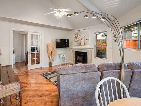 Welcome to Sonoma Racquet Club. This turn-key 3 bed, 1.5 bath PUD is nicely tucked among redwoods & backs to a lush greenbelt & walking trail. The floor-plan features 3 sizable bedrooms & 1.5 bathrooms. There is a convenient bedroom on the main level, which features double glass doors and is currently used as an office. The kitchen is equipped with ample cabinetry, a brick accent wall and a peek-a-boo window. The spacious living room boasts soaring ceilings, a tile fireplace & slider access to the private patio. The home includes laminate floors on the main level and newer carpet upstairs. The master bedroom features vaulted ceilings, a walk-in closet, a ceiling fan, and a shower with decorative tile. The newly fenced backyard has its own private entrance and includes planter boxes and low maintenance landscape. The complex features a swimming pool, tennis courts, walking paths and more.