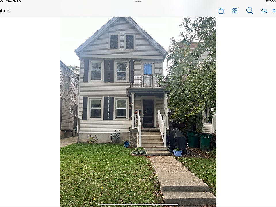 Spacious 2 bedroom upper hardwood floors throughout great location includes stove and fridge.Cat ok no dogs.Available October 1st One year lease owner pays water and garbage fee.