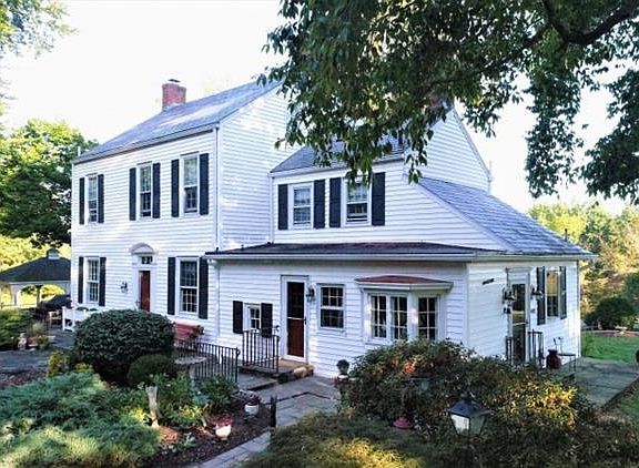 Magnificent circa 1863 colonial with 4 bedrooms and 3 full bathrooms perched atop 2.7 acres in beautiful Hillsborough. 682 River Rd is where old world charm meets modern convenience. This one of a kind home boasts tastefully updated master en-suite, 1st floor full bathroom off the library and an eat-in country kitchen - all while keeping with the period correct pumpkin pine floors, decorative mouldings and two fireplaces. The grounds are an entertainers dream with wrap around bluestone patio, the covered pavilion with tv hookup, stamped concrete floor and pea gravel courtyard surrounded by a period fieldstone wall is perfect for a summer get together.
