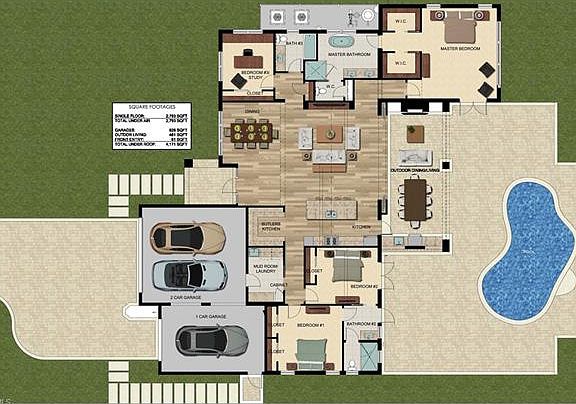 ONE STORY, new construction home with 4 bedrooms, 3 baths, 3 car garage and pool/spa. The large homesite (100'X160') is located in flood zone "X" so no flood insurance required. Features include wide plank wood floors in all living areas and bedrooms, marble flooring in the master bath, Ruffino Custom cabinets with marble/natural quartz/granite counter tops and impact resistant doors and windows. The Kitchen and Butlers kitchen feature SubZero and Wolf appliances including a 30" wine cooler with 2 built in refrigerator drawers, built in coffee system and large island. The custom interior trim package includes tongue and groove ceilings in every room as well as exposed trusses in the great room. The covered outdoor living/dining area is 461 sq ft and includes an outdoor kitchen with Wolf grill, SubZero refrigerator as well as a fireplace. Located in the Moorings this property is close to everything Naples has to offer and qualifies for membership to the Moorings Private Beach Park- currently $75 per year. Home is expected to be complete in Jan/Feb of 2017.