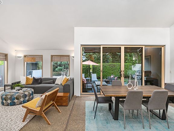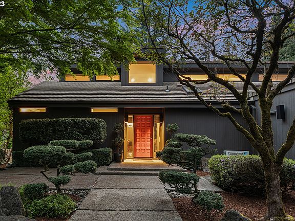 Architecturally Custom one-level contemporary, with no interior steps making for the perfect condo alternative. Located within a special quiet, private enclave of South Portland's Collins View neighborhood! Tucked away on the corner of 2 dead end streets. Level lot, with mature landscaping, 0.28 acre lot with exceptional gardens, landscape architecture with Japanese influences - including reflection garden. Plantings include Australian Pines, Japanese Maple, Pink Dogwood, with meandering gravel pathways tracing the property. Oversized sliders open to large patio with remote controlled retractable awning, Hot Tub & storage shed. The perfect setting to entertain friends/family, enjoy a novel under the umbrella on a sunny afternoon, or simply listen to the birds sing. Vaulted ceilings throughout the home, create airy light filled living spaces. Aggregate concrete floors with radiant heat throughout + Heat Pump W/AC. Original finishes in pristine condition to enjoy as they are, or presenting opportunity for a buyer add their own personal touches. Easy access to hiking, and biking at Tryon Creek State Park. Only minutes to downtown PDX, LO & OHSU. [Home Energy Score = 8. HES Report at https://rpt.greenbuildingregistry.com/hes/OR10212710]
