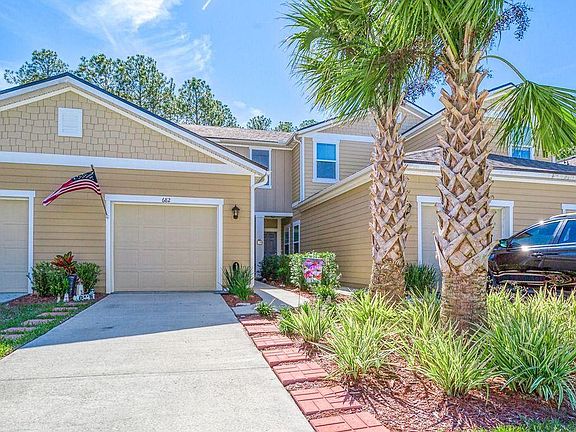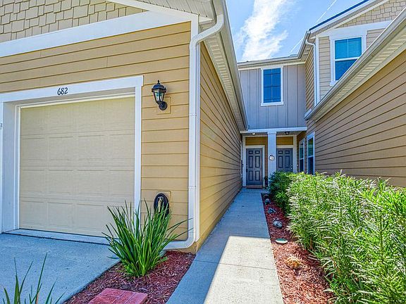 Beautiful 2 Bd 2.5 Bth Durbin Crossing townhome in desirable north St. Johns County with the best schools in the state! The fully-tiled first floor provides a spacious open floor plan. The kitchen features granite counters, maple cabinets, and stainless-steel appliances, and flows into the dining and living area. A laundry closet and a half bath complete the downstairs. The second floor includes 2 bedrooms with walk-in closets and their own individual attached bathrooms. Backyard is fully fenced for privacy but with beautiful preserve views. Residents have access to Durbin Crossing's 2 amenity centers offering daily activities, pools, tennis courts, basketball and volleyball courts, kids' play area, large skateboard park, dog walking park, and sports park.