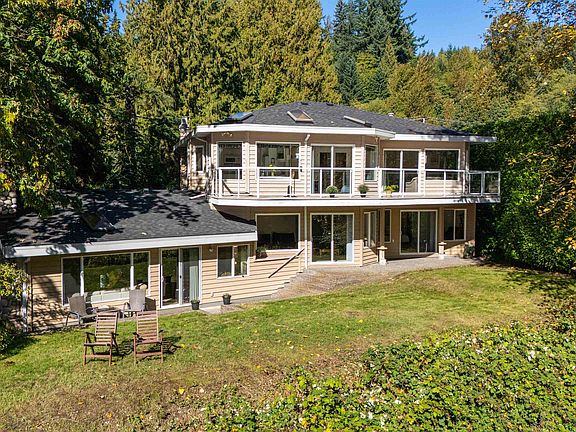 One-of-a-kind riverfront estate on a nearly 23,000 sq ft lot! This exceptional property offers unmatched privacy, space, and natural beauty with direct frontage on the Seymour River. The two-level residence is designed to capture the stunning views with sun-drenched living spaces, expansive windows, and multiple decks & patios. A private driveway leads through the manicured grounds and the mature gardens to this private riverside gem. A perfect family home where you can enjoy the peaceful sounds of the river while the kids play on the park size front lawn. The bonus above ground 2 bedroom suite (with its own garage) is ready for the in-laws or great for rental income. Rarely do properties of this scale and setting come to market...this property is a true North Shore treasure.